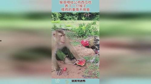 女生喂猴子吃瓜,女生与猴子的温馨喂食瞬间